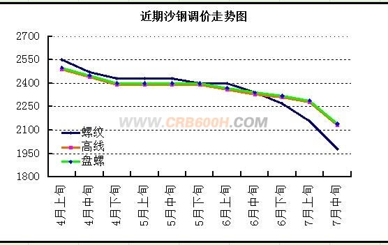 前几天的一条新闻“沙钢股份上半年预亏5700万至6800万元”,似乎预示了当前钢铁行业的窘境。近月来,沙钢一直在下调出厂价格,这与原材料市场下滑有关,更与当下钢铁行业萎靡有关。虽然此次沙钢对7月1期螺纹钢、盘螺、高线都有追补,但是中旬调价依然大幅下跌,如果刚刚有所反弹的钢价再次回到下跌通道,后期沙钢的亏损是不是还会进一步扩大呢?